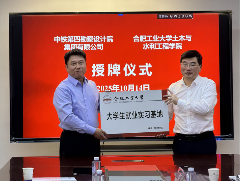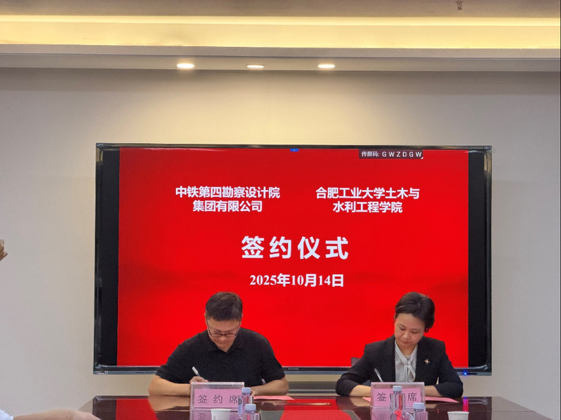 10月14日,合肥工业大学土木与水利工程学院与中铁第四勘察设计院集团有限公司(以下简称“铁四院”)举行校企合作交流会议,双方共同签署合作协议,正式启动大学生就业实习、实践教学基地共建工作。铁四院副总工程师雷崇、土木与水利工程学院院长王静峰、副书记关茜和相关系负责人、教师代表共同出席本次活动。