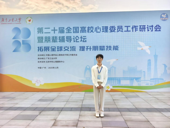 近日,由中国心理学会心理危机干预工作委员会主办、广东工业大学承办的第二十届全国高校心理委员工作研讨会暨朋辈辅导论坛圆满落幕。我院给排水科学与工程专业的谭佳晨同学,凭借优异的工作表现和扎实的心理服务素养,成功入选“全国百名心理委员风采展”。