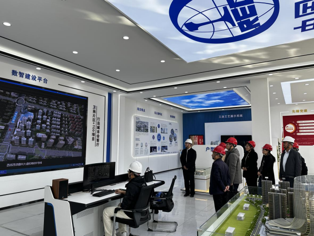 师生党员移步项目信息化室及产业工人社区进行实地参观。项目部负责人王龙五对卫岗片区TOD工程总承包项目作了详细介绍,该项目是全国首批城市更新推广、合肥市首个“TOD+城市更新”综合性开发项目。项目部构建的数字建设平台,实现了以BIM+数字孪生和AR实景为核心的“双平台系统”信息化应用。该系统集成BIM、GIS、物联网、远程视频及AI识别等多项技术,兼具作业环境的数字孪生与实景呈现功能,并支持作业过程对讲与管理数据的动态分析。师生党员们切身感受到了智慧工地的实际发展及其应用成效,深刻体会到科技创新对建设领域的全面赋能。