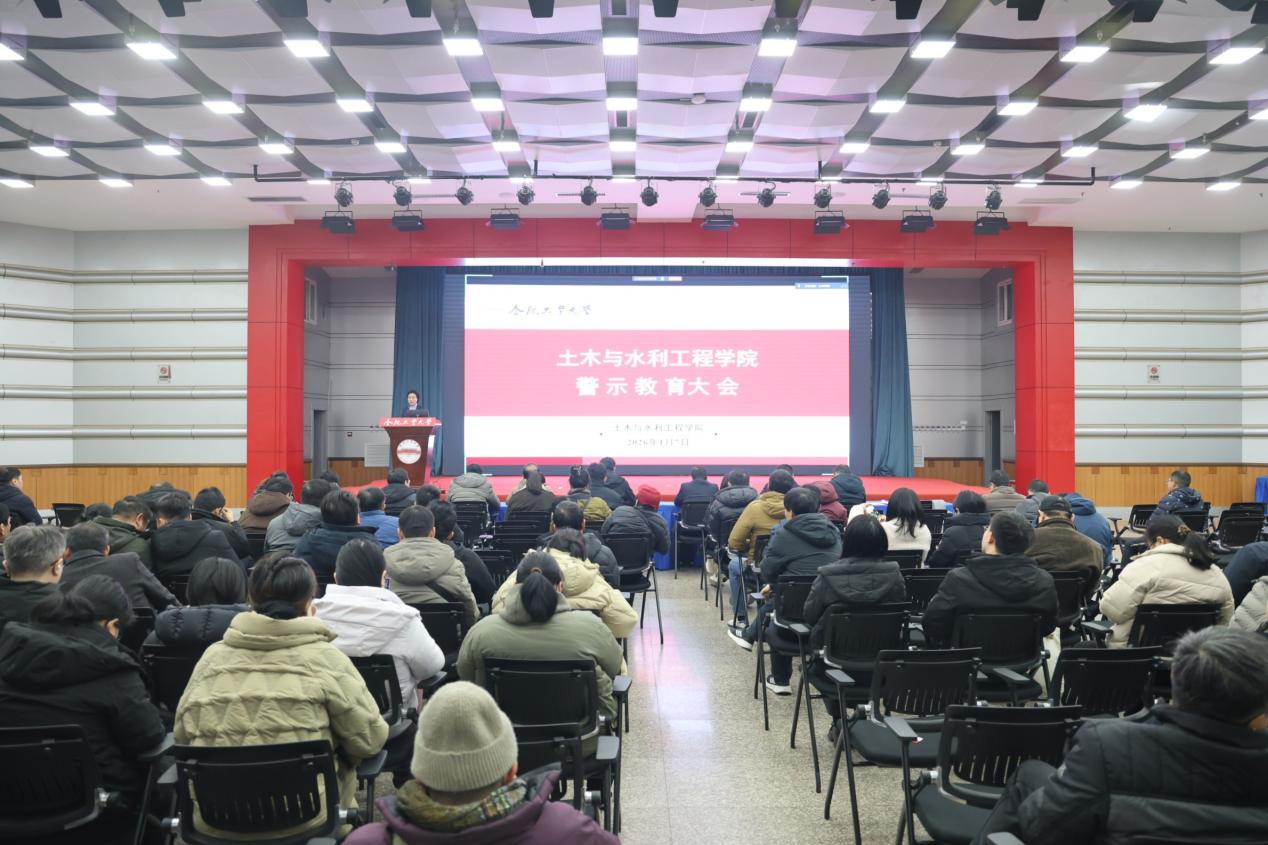 1月7日,学院在东风报告厅召开警示教育大会。学院领导班子、全体教职工参加会议,城市建设工程系教师在宣城校区会场线上参会。学院党委书记王东坡主持会议。