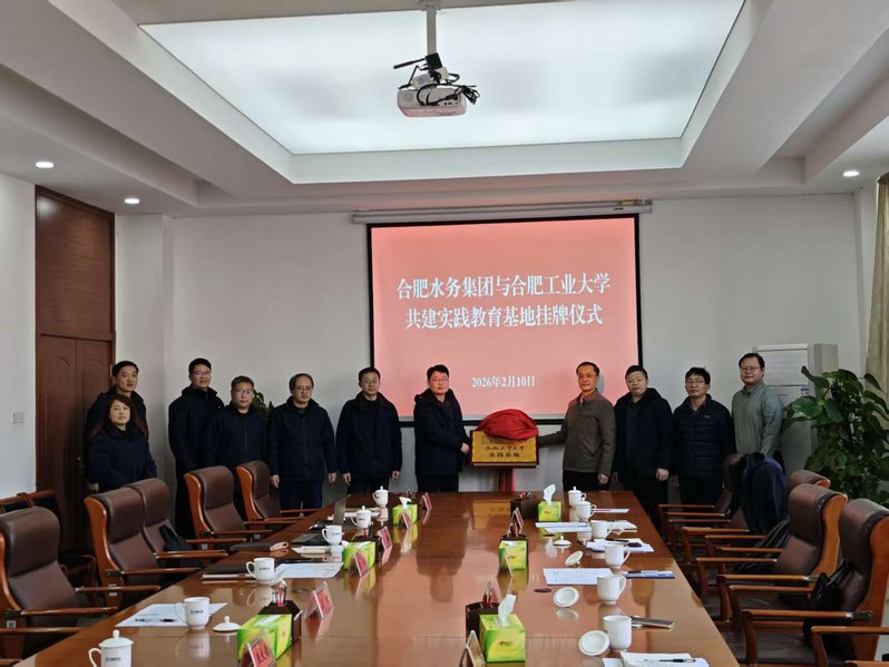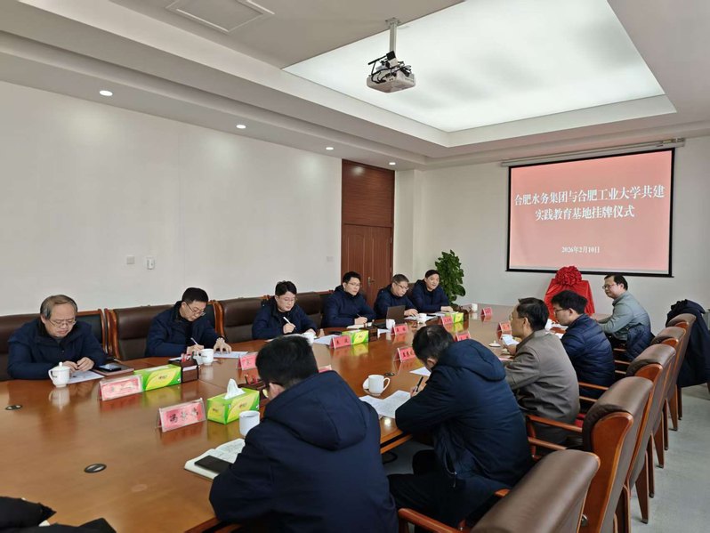 2026年2月11日,我院前往合肥水务集团有限公司开展校企产学研合作交流及访企拓岗,并揭牌共建实践教育基地。合肥工业大学土木与水利工程学院党委书记王东坡、副院长王昌建、党委委员兼市政系支部书记王伟、系主任冯景伟及市政系、水利水电系相关教师,以及合肥水务集团总经济师朱波、合肥水务环境建设投资有限公司总经理宋纲、信息规划部部长吴铭、总工办负责人王大钧等方代表出席了交流会。