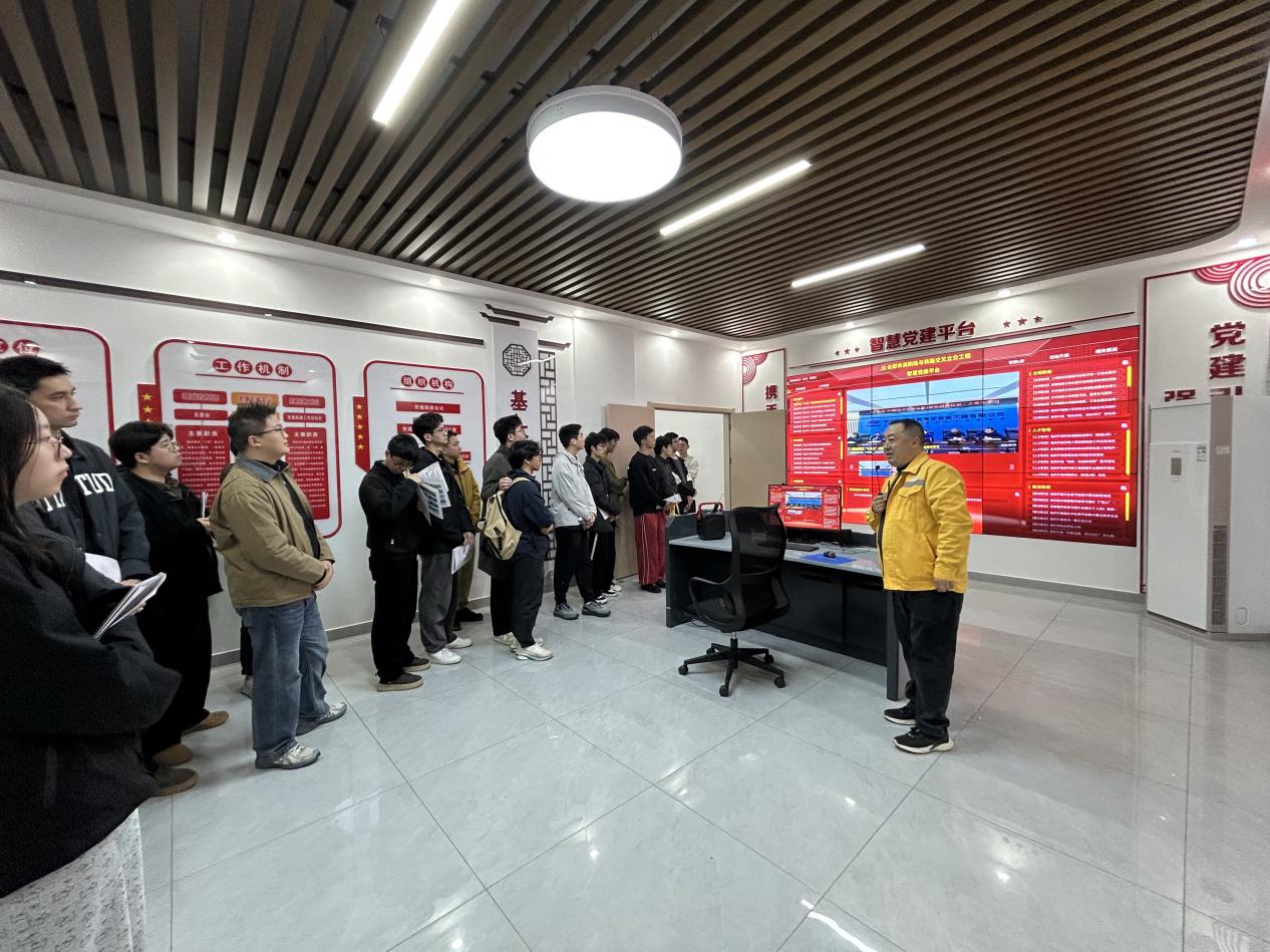 在项目党建联建工作站,师生们认真听取了项目党支部书记党金华关于党建联建工作机制、智慧党建平台建设以及党建与生产深度融合等方面的介绍。作为工大校友,他分享扎根一线、以党员担当攻坚克难的成长经历,让学子直观感受“支部建在项目上、党旗飘在工地上”的基层党建实效,深刻理解专业学习与国家基础设施建设的紧密联系。