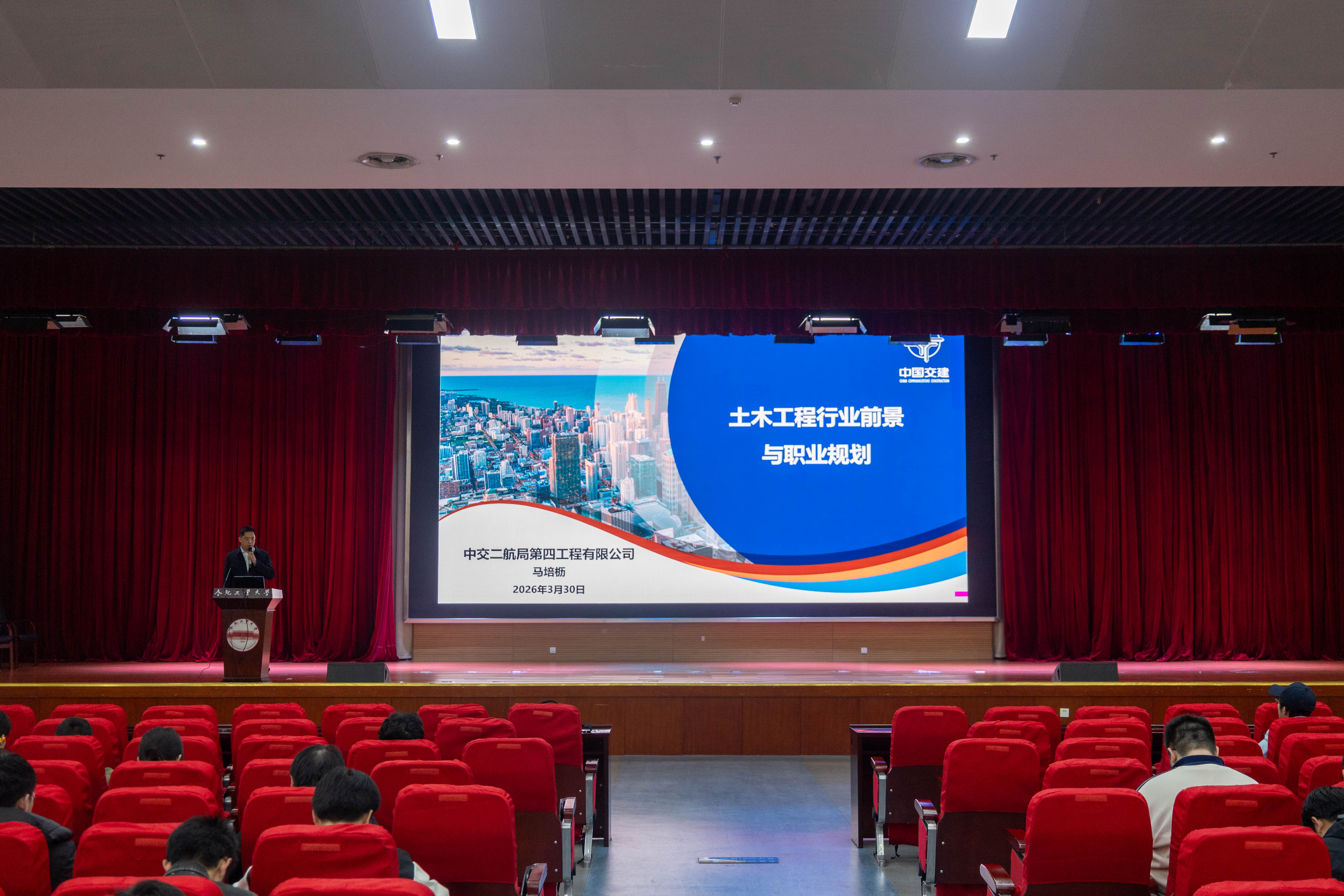 3月30日晚,土木与水利工程学院在翡翠科教楼二楼报告厅举办“智建卓越大讲堂”专题报告会,邀请中交二航局第四工程有限公司江北2313地块项目经理、片区经营经理马培枥校友担任主讲,200余名本科生参加活动。