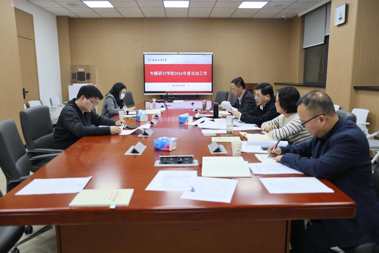 为深入学习贯彻习近平法治思想,全面贯彻落实党的二十大精神、党的二十届四中全会精神和全国“两会”精神,为深化教育综合改革、推进学院治理现代化,按照学校相关决策部署,会上研讨并通过了学院2026年法治建设工作实施办法、学院2026年度法治工作计划和工作台账,并部署了在全院范围开展普法教育等相关工作。