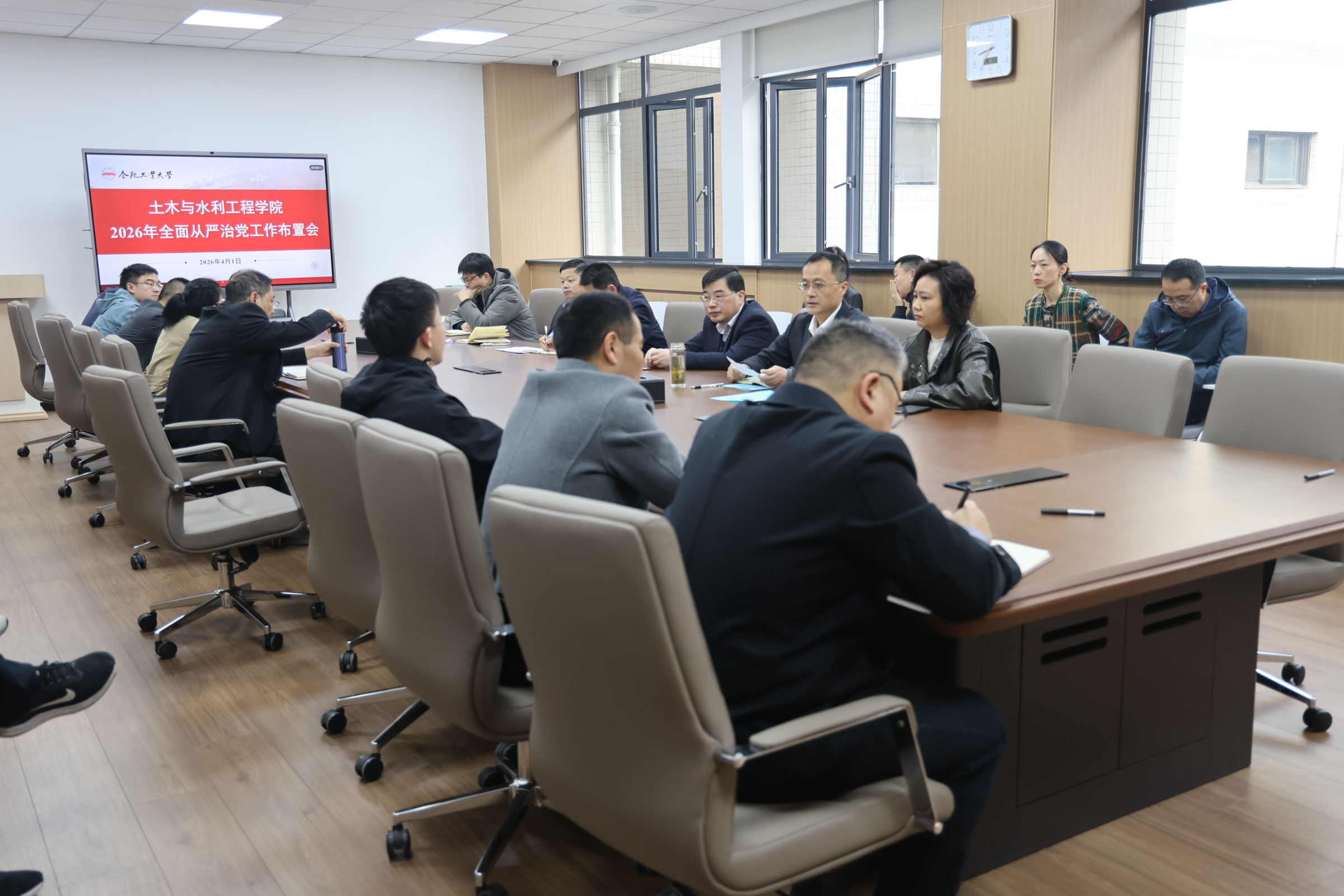 4月1日,土木与水利工程学院召开 2026 年全面从严治党工作会议。学院领导班子、各系主任及支部书记出席会议。学院党委书记王东坡主持会议。